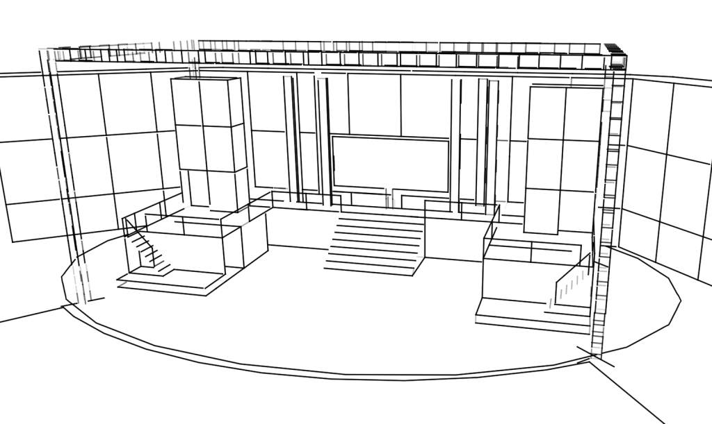 Resultatet blev en scene bygget hovedsageligt af stillads som på sit højeste punkt nåede 8 meter. En afskærmning skjulte skoven og søen bag scenen, og beklædt med stilladsnet fungerede den som lysleder, da solen gik ned.