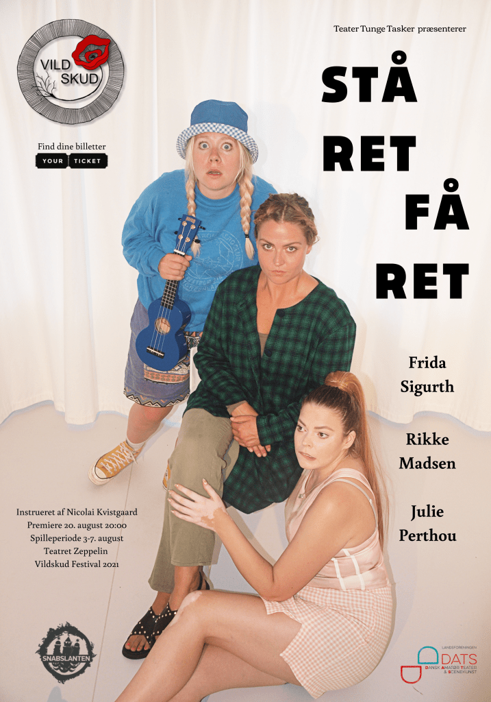 Designforslag til plakaten til forestillingen ‘Stå ret, få ret’.